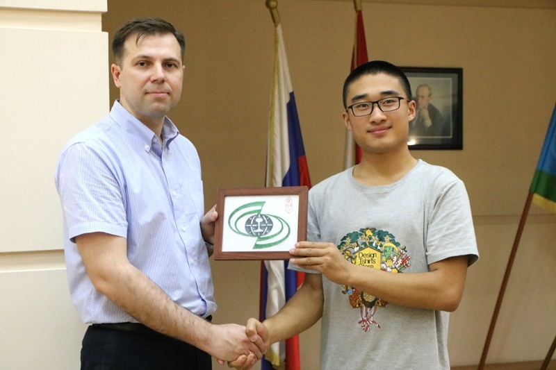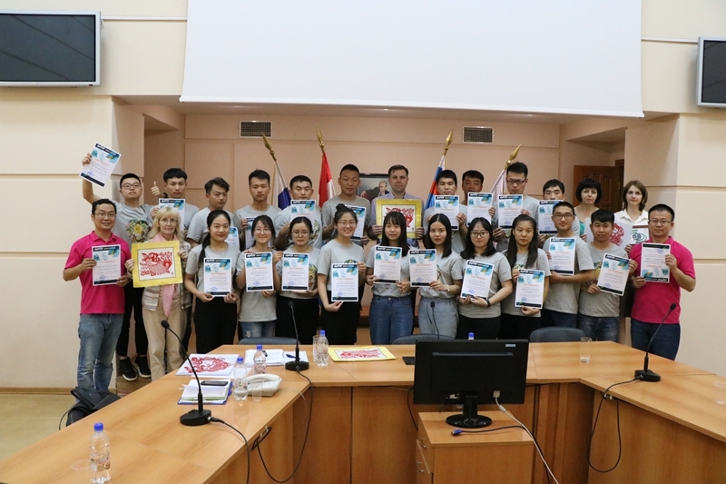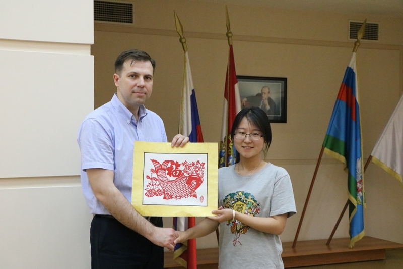 铁院学子向萨马拉国立交通大学校方赠送剪纸作品《连年有余》