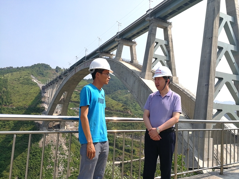 学院毕业生、项目安全总监张帆向王津院长汇报夜郎河特大桥工程情况