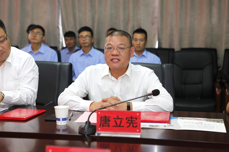唐立宪首先对两个月以来,为组建2016级订单班辛勤付出的各位领导和老师表示感谢。随后,他就中建八局轨道公司发展情况及前景作了详细的介绍,对订单班同学提出两点希望,一是思想转变、树立标杆,二是努力学习、提升自我。轨道工程系主任毛红梅介绍现代学徒制卓越工程师订单班前期合作进展及合作内容。教务处处长蒋平江宣读了《关于成立2016级中建八局轨道公司现代学徒制卓越工程师订单班的决定》文件。