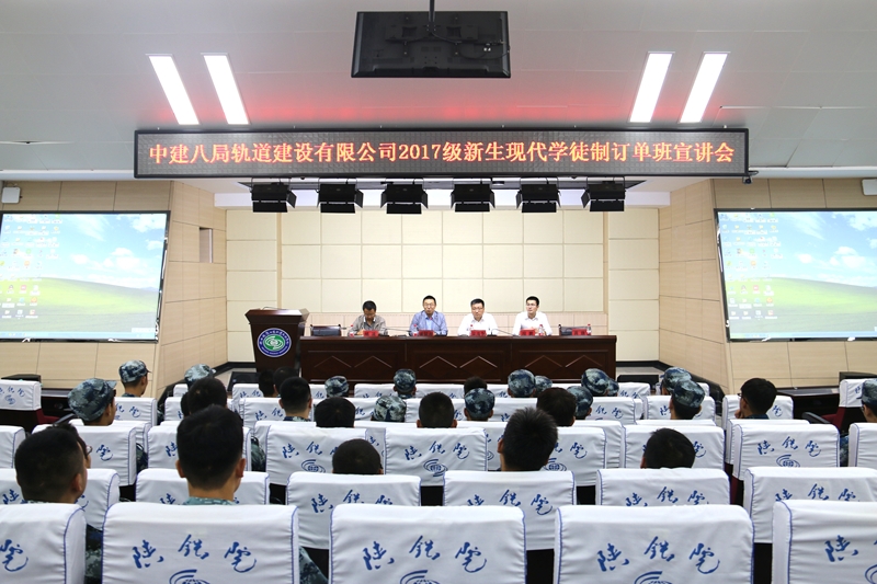 9月5日上午,学院与中建八局轨道公司在高新校区南楼会议室举行2016级现代学徒制卓越工程师订单班开班仪式。院长王津、副院长焦胜军、中建八局轨道公司总工程师唐立宪、副总工程师荣亮等企业领导,学院就业处、教务处、轨道工程系等部门负责人,相关专业教师及订单班35名学生参加了开班仪式。会议由焦胜军主持。