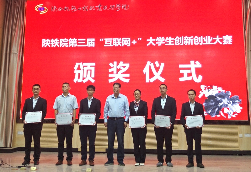 副院长焦胜军宣读了《关于表彰学院2017年“互联网+”大学生创新创业大赛获奖项目及部门的决定》陕铁院〔2017〕70号文件。其中“陕西众创智慧交通科技有限公司”等6项作品获得金奖;“创智科技”等12项作品获得银奖;“掌上餐厅”等18项作品获得铜奖。道桥工程系、测绘工程系获优秀组织奖。“陕西众创智慧交通科技有限公司”项目指导老师彭磊、张薇、宁波,“隧道空气质量智能监测控制系统”项目指导老师贾永博,“智能扶尺仪”项目指导老师冯上朝、杨柳、宋德军,“电磁吊装技术在桥梁施工中的应用与推广”项目指导老师陈艳茹、杨勃,“地铁卫士”项目指导老师聂红宾、贾良、廖勇,“远程智能监控平台在高铁转体桥梁中的应用”项目指导老师舒彬、郑煜、郎儒林获“优秀创新创业导师”称号。