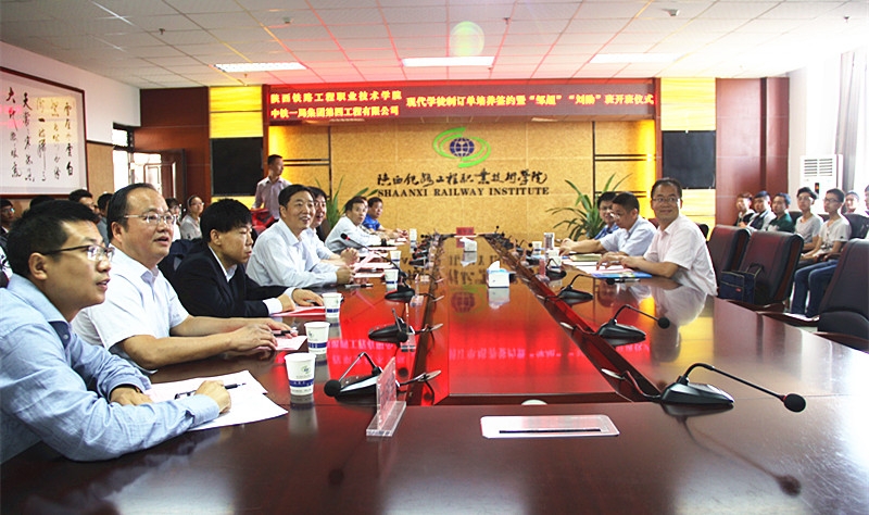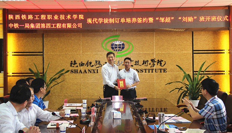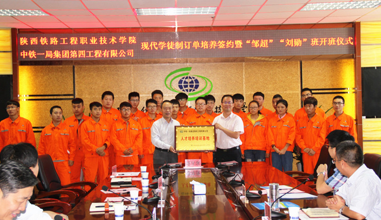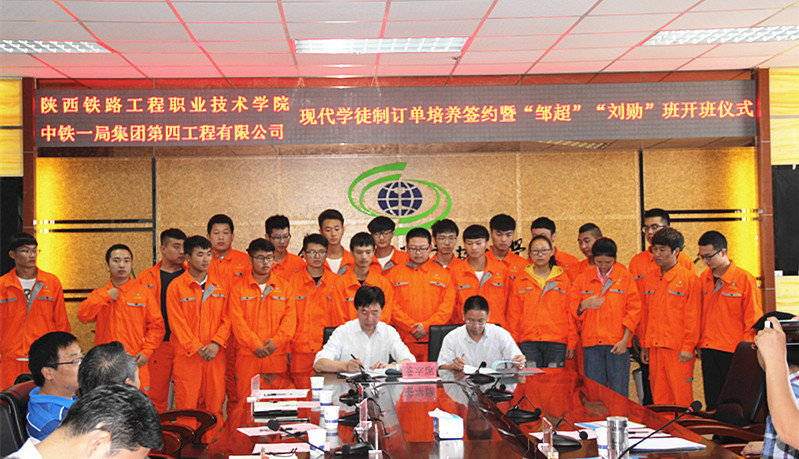 9月7日,学院与中铁一局四公司在高新校区南三楼会议室举行现代学徒制订单培养签约暨“邹超”、“刘勋”班开班仪式。院长王津、党委副书记车绪武、副院长焦胜军、中铁一局四公司总工程师邹超、发展规划部部长兼党办主任高怀泽、人力资源部部长黄成武等校企领导出席会议,学院校企合作处、铁道工程系、道桥工程系等部门负责人,中铁一局四公司宣传部雷俊杰、相关专业教师及订单班学生参加仪式。会议由焦胜军主持。