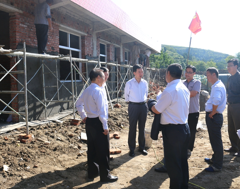 王津一行到槐树关镇陈坪村,察看正在施工的文化广场