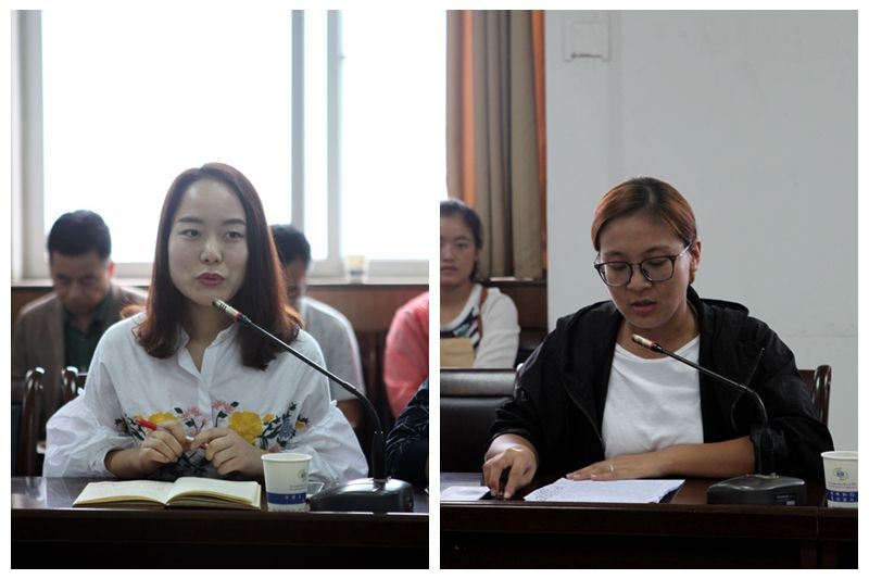 获奖教师代表党思琦、卢娇娇两位老师分别从自己参加教学比赛的准备、经过、收获、感想等方面进行了发言。他们一致认为此次教学比赛为自己搭建了平台,对提高自己今后的授课水平起到了重要的作用。