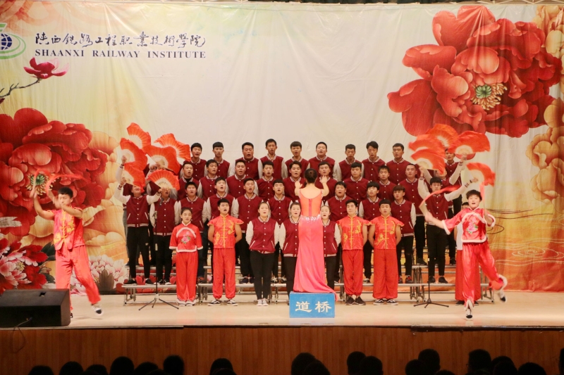 晚会在《陕铁院学子之歌》、《强军战歌》中拉开序幕。晚会节目丰富多彩,啦啦操表演、舞蹈《大漠之花》、朗诵《嘎达梅林》、《永远跟党走,喜迎党的十九大》以及《当兵前的那晚上》、《当那一天来临》等12个精彩节目相继登台亮相,前后历时2个多小时。期间,舞蹈《大漠之花》、合唱《山丹丹花开红艳艳》、朗诵《永远跟党走,喜迎党的十九大》等节目引得师生掌声不断,将晚会进一步推向高潮。