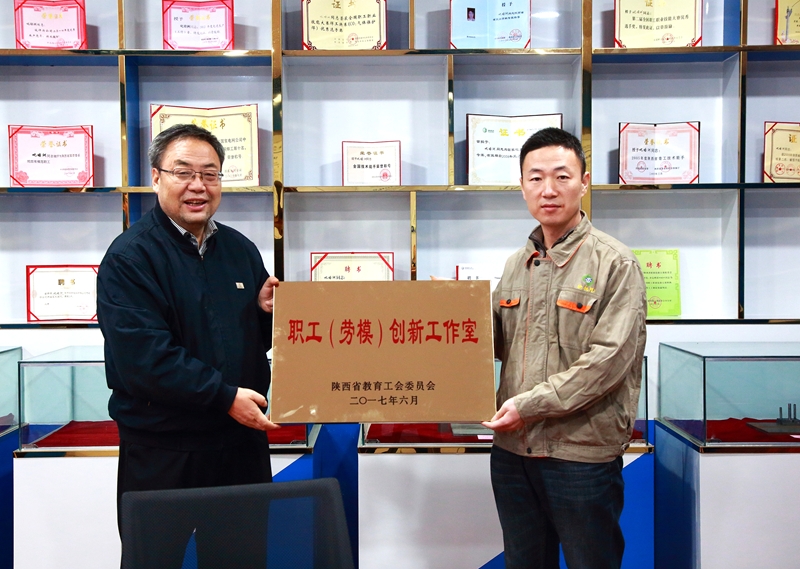 10月17日上午,陕西省教育工会主席张敏、副主席陈鹏一行来到学院临渭校区,在学院党委书记王晖,党委副书记、工会主席杨云峰的陪同下,向机电工程系“叱培洲焊接技能大师工作室”授予“职工(劳模)创新工作室”荣誉奖牌。院工会及机电工程系负责人等现场参加了授牌仪式。