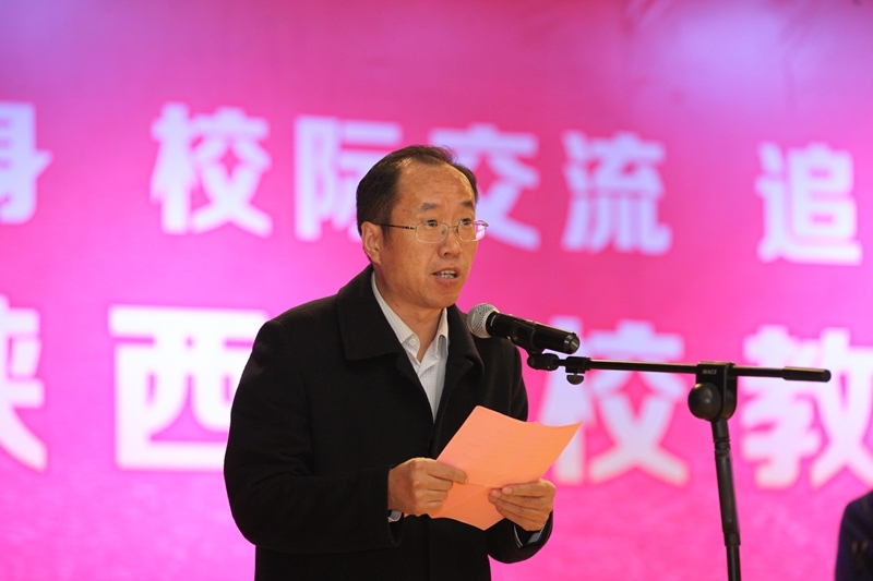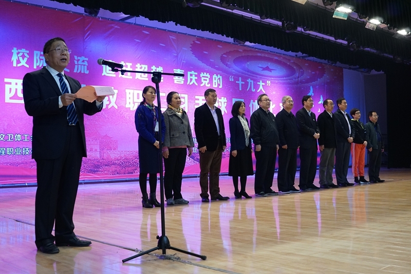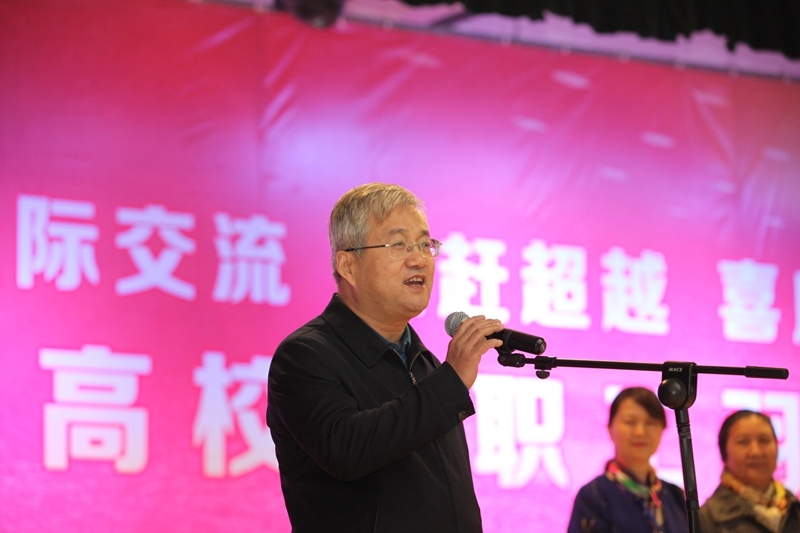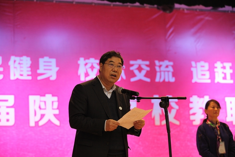 陈建树代表省教科文卫体工会致辞,希望本次比赛展省内高校之风采,扬教育工会之美名,为陕西省的体育事业再添佳绩。