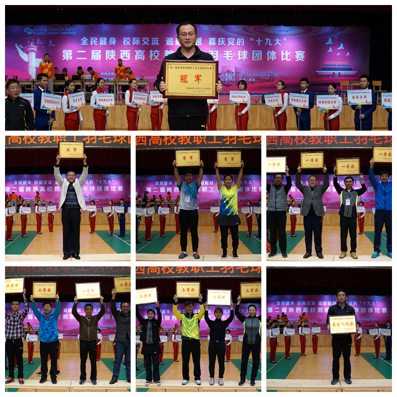 闭幕式上,陈建树代表省教科文卫体工会向获得优异成绩的院校和运动员表示热烈的祝贺,向陕铁院、裁判员、工作人员和志愿者表示衷心的感谢。他强调,本届羽毛球赛增进了院校的友谊,展示了高校教职工的风采,是一场积极向上的盛会。希望各参赛队带着运动的激情,立足岗位,推动省内高校各项事业的蓬勃发展。(姜东亮/文 杨光 学生记者尤艇 吴欣然/图)