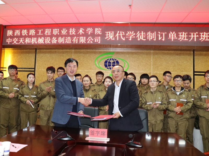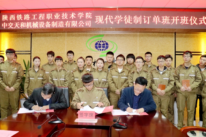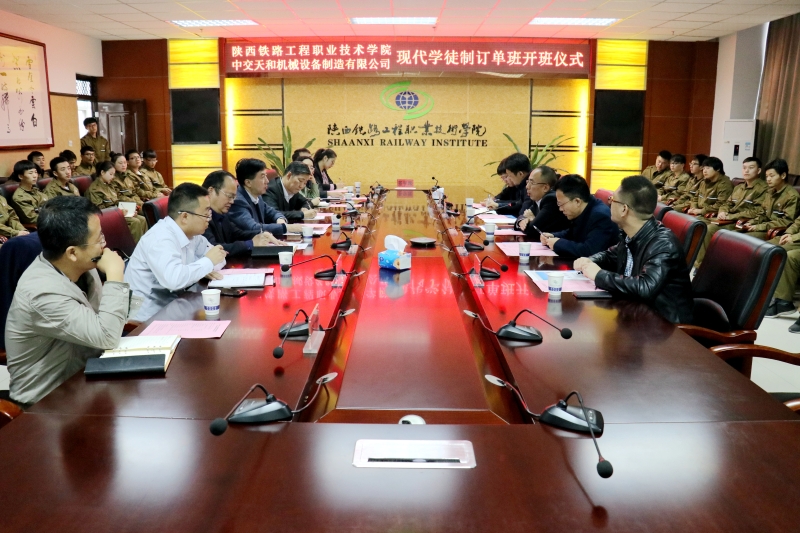 为积极开展校企合作、工学结合人才培养模式改革,提高人才培养质量,促进人才培养与企业需求的无缝对接,实现校企合作育人,学院与中交天和机械设备制造有限公司联合成立现代学徒制订单班。10月31日上午,中交天和机械设备制造有限公司现代学徒制订单班开班仪式在高新校区行政楼A1三楼会议室举行。中交天和机械设备制造有限公司总经理高光辉、人力资源部部长郭宏浩等五位企业领导,学院院长王津、副院长焦胜军等学院领导出席了此次会议。参加会议的还有轨道系负责人、订单班班主任及订单班的33名同学。会议由焦胜军主持。