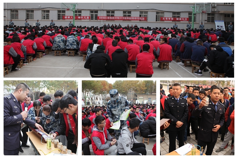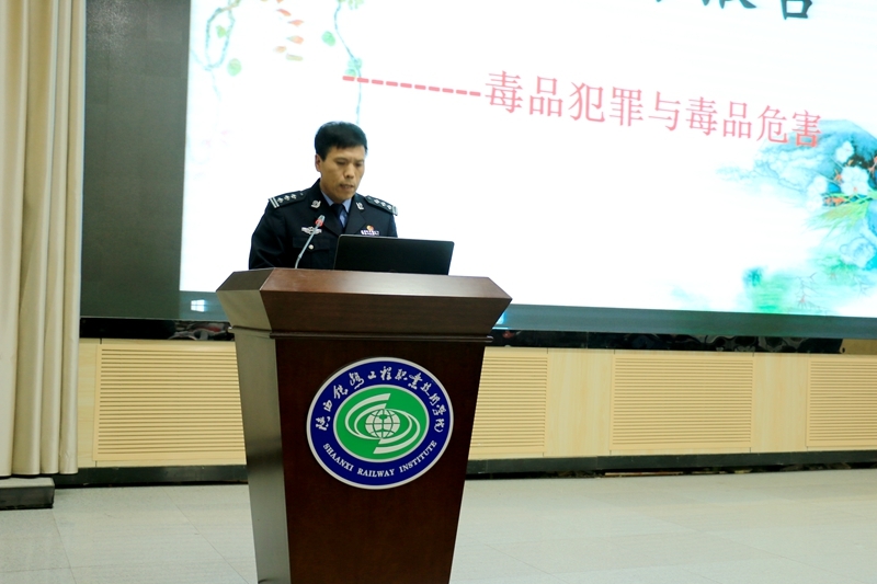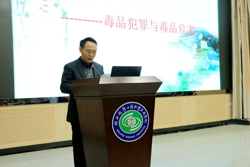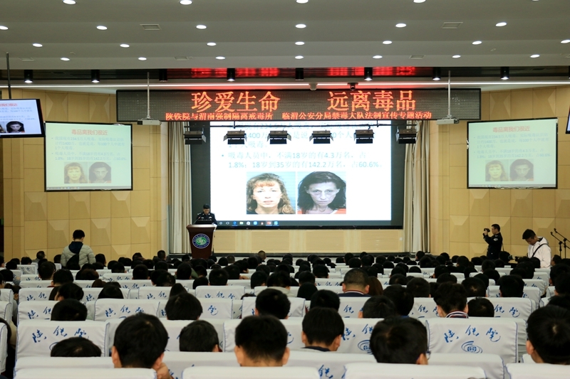 11月16日下午,学院与渭南强制隔离戒毒所、临渭公安分局禁毒大队在高新区博爱厅联合开展法制专题活动,学院党委副书记车绪武,渭南强制隔离戒毒所副所长郭安俊、教育科科长陈应社,临渭公安分局禁毒大队警官王力军、吴鑫,高新校区各党总支书记、学工办主任、辅导员及500余名学生参加本次活动,活动由建筑系党总支书记主持。