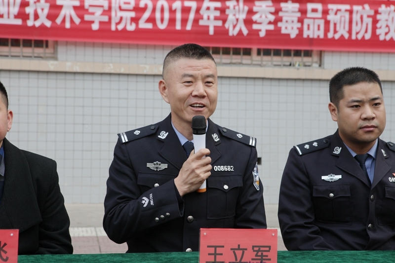本次活动还以“禁毒宣传进校园警校共筑防火墙”为主题在会场外开展禁毒宣传教育活动。活动中,王立军为师生作了《珍爱生命 无毒青春》专题报告。他从毒品种类、毒品的特性、毒品的形状、毒品的危害以及如何有效预防和打击毒品犯罪等方面进行了讲解,重点针对毒品对青少年的危害进行了深入剖析,为学生敲响了警钟。
