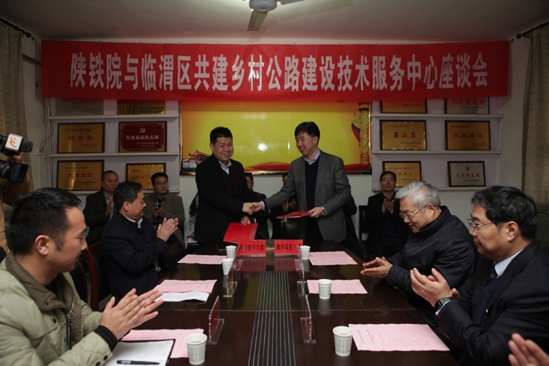 座谈会上,王津院长和王鹏副区长签订了《乡村公路建设技术服务中心协议书》。学院道桥工程系负责人介绍了技术服务中心的建设情况。中心成立后,将充分发挥学院专业优势和师资优势,以渭南到桥南公路改建等乡村公路建设项目为载体,推进产学研合作。技术服务中心将从以下三个方面开展工作:一是多方位开展科学研究。认真梳理乡村公路建设中的技术难点问题,组织专门团队进行技术攻关,与临渭区交通局联合申报科研课题,针对乡村公路成本控制、上跨下穿既有线、乡村公路病害防治等方面开展科学研究,为乡村公路建设维护提供理论支撑。二是全过程参与建设项目。派遣骨干教师参与乡村公路建设过程,面向临渭区交通系统开展方案论证、图纸审查、施工方案变更等技术服务。三是多层次开展技术技能培训。针对临渭区交通局管理干部需求开展施工技术培训和综合管理技能培训;针对乡村公路建设一线职工开展工程材料试验、公路养护和维修技能培训;针对困难群众开展钢筋笼绑扎、模板安装、脚手架搭建等基本技能培训,促进农村剩余劳动力输出。