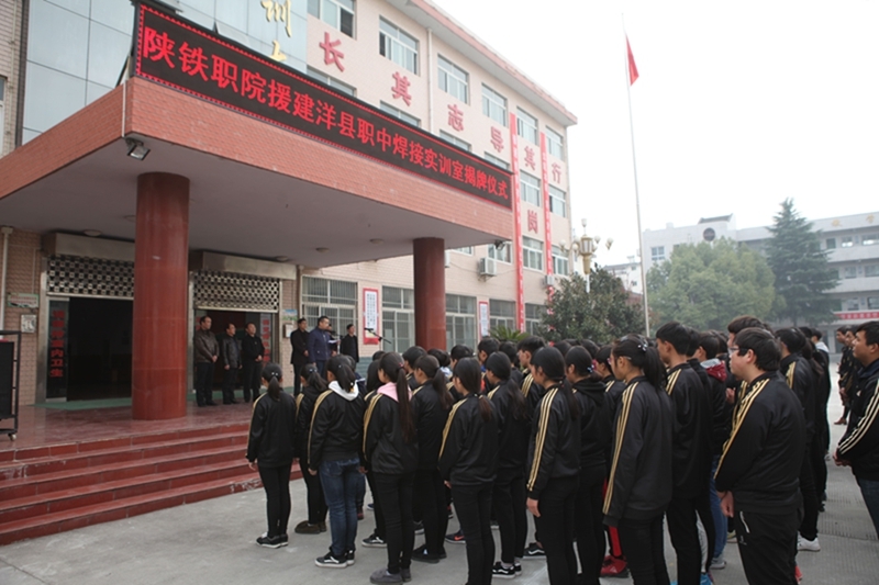 学院援建的洋县职教中心焊接实训室揭牌仪式现场