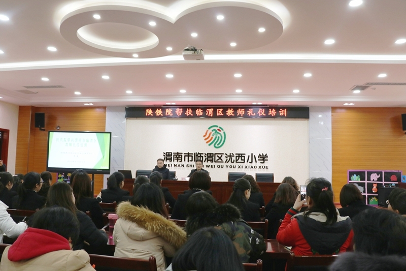 12月13日下午,临渭区中小学教师礼仪培训班(学院帮扶临渭区教育局项目)在沋西小学进行,艺术教育中心教师从教师礼仪基本概况、行为举止、言谈以及仪容仪表4方面讲解了基本礼仪知识。