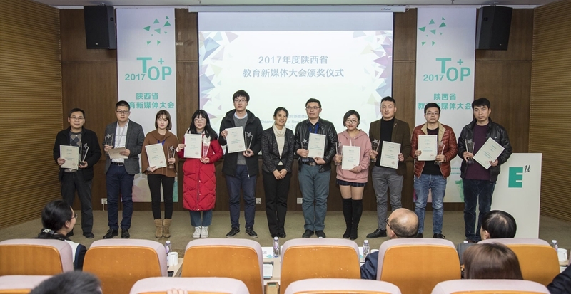 学院(右五)荣获“2017年度陕西教育新媒体矩阵建设奖”