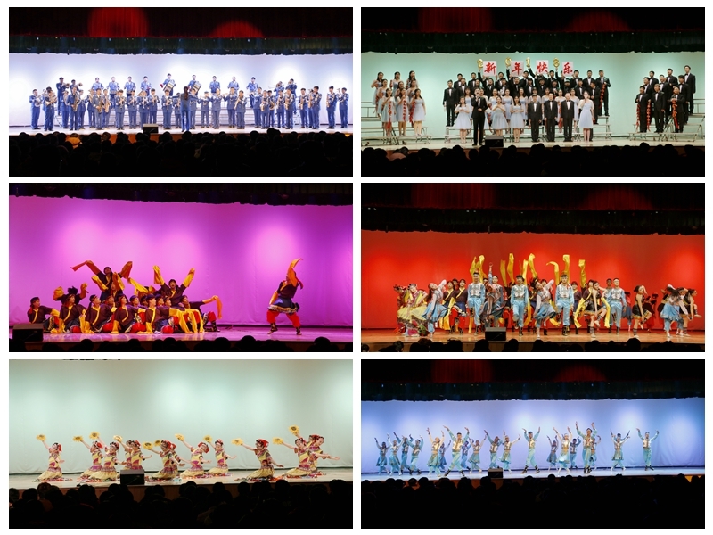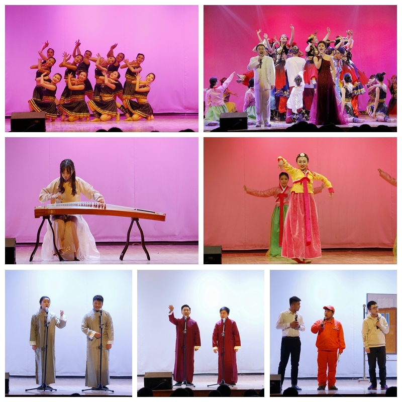 颁奖晚会在生军乐团带来的《欢迎进行曲》中拉开帷幕。歌曲《新年快乐》轻松快乐、形式新颖,古筝独奏《战台风》、相声《西游朋友圈》等各种艺术形式多样,充分展现了学子们的风采英姿及青春活力,现场气氛和谐、热烈而欢快,晚会在大型民族歌舞《情满天路 民族大团结》中落下帷幕。