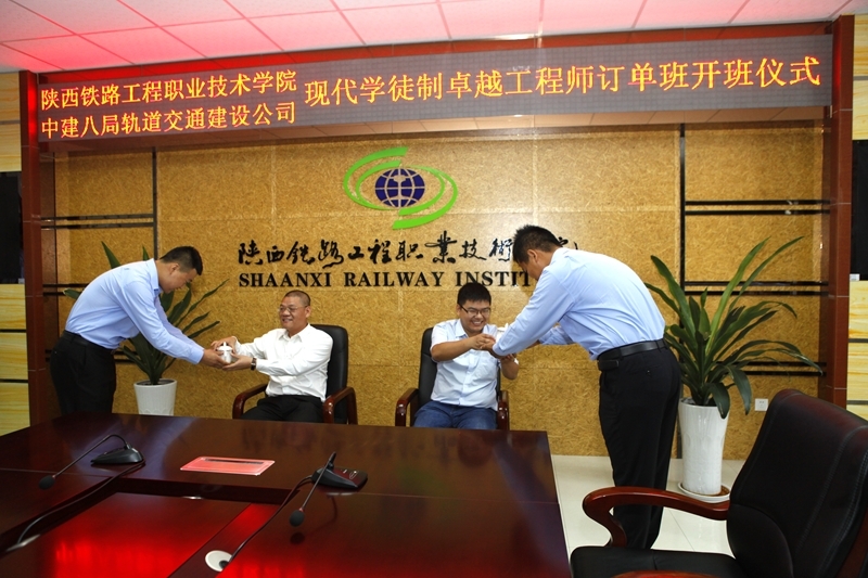 学院先后与中铁一局、中铁十四局、中铁十八局、中建八局、中交天和机械制造公司等多家单位开展现代学徒制人才培养工作,组建13个现代学徒制班,由企业冠名、设立奖学金,发放企业工装,师徒结对培养。校企共同设计专业人才培养方案,共同制订专业教学标准、课程标准,联合教学、联合管理、双主体协同育人。