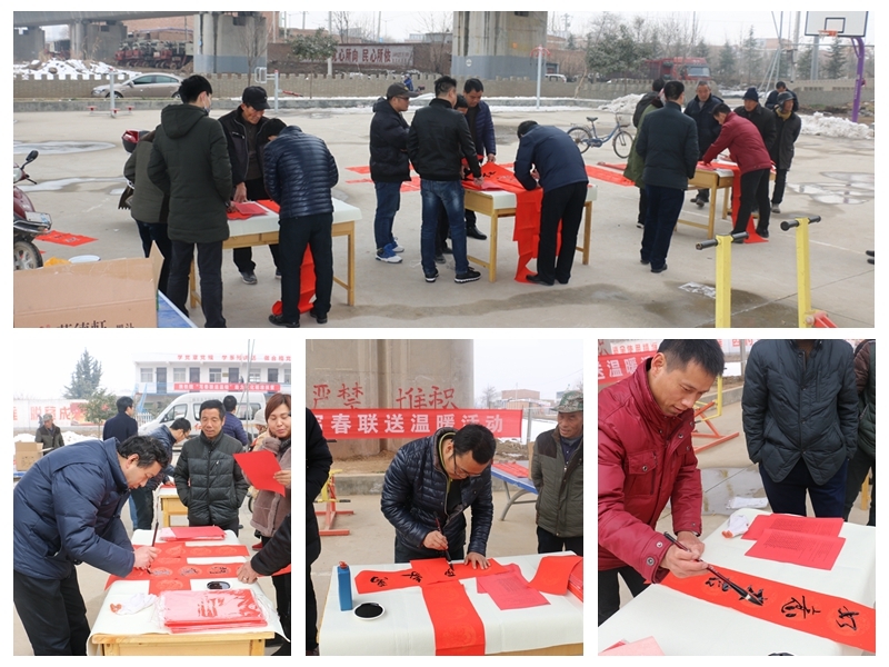 写春联、贴春联是我国春节的年俗。为践行习近平总书记在党的十九大报告中推动中华优秀传统文化创造性转化、创新性发展、满足人民过上美好生活的指示精神,营造喜庆祥和的春节氛围,活跃群众文化生活,学院走进张西村、阳郭镇开展了本次“精准扶贫送温暖·义写春联下基层”的送春联活动。