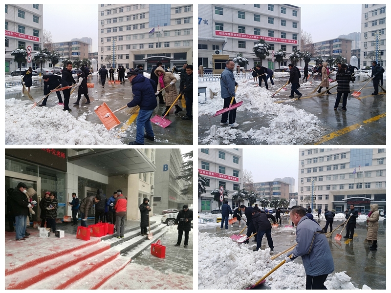 1月24日至27日,渭南迎来了2018年的第二场大雪,强降雪为大家的出行造成极大的不便。在学院党政办、后勤保障处的倡议下,学院党委副书记车绪武,党委副书记、纪委书记杨云峰,副院长王闯等院领导纷纷行动起来,带领广大党员同志、在校职工及值班人员一起为学院扫雪铲冰。期间,院工会还为大家准备了食物补充体力。严寒没有冻住大家的扫雪热情,扫雪现场热火朝天。大家不仅体验了冬季集体扫雪的乐趣,也为创建平安、美好校园贡献了一份力量。