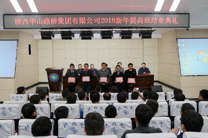 3月3日下午,陕西华山路桥集团有限公司2018年新年提高培训班结业典礼在学院高新校区诚信厅举行。华山路桥公司总经理杨永锋,总工程师方晓明,总经理助理、人力资源部部长刘杰敏,副总工程师、科技质量部部长荣学文,学院院长王津,党委副书记、纪委书记杨云峰,副院长焦胜军出席会议,测绘工程系、道桥工程系、继续教育部负责人及50名参培学员参加了会议。会议由杨云峰主持。