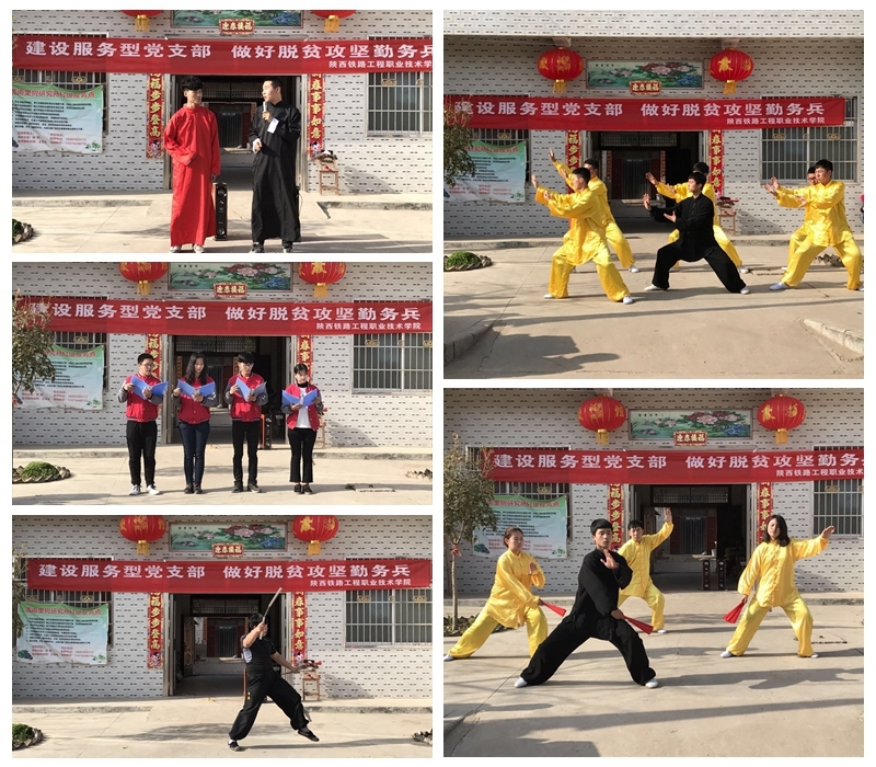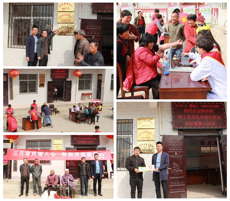 3月21日铁工系30多名志愿者前往临渭区阎村镇徐韩村开展“精准扶贫•暖心行动”为主题的扶贫活动,并在该村挂牌设立铁工系志愿服务点,把该村一条道路命名为“陕铁院铁成路”。活动中威风锣鼓队为村民进行了精彩的锣鼓表演,志愿者走村串户,深入了解村民生活,为村民清扫道路,为贫困学生赠送了学习文具,鼓励他们勤奋学习,一系列暖心帮扶活动赢得村民的欢迎。在该村村部志愿者党员重温入党誓词,对广大学生进行了一次深刻的党性教育。