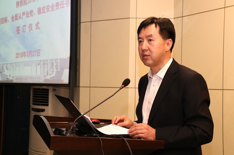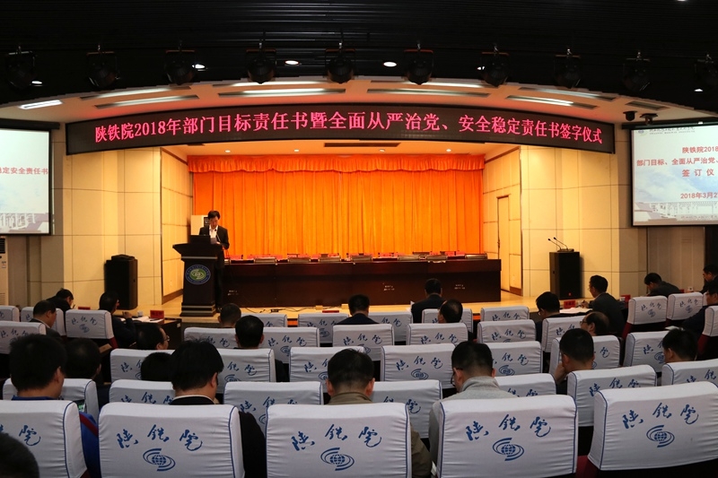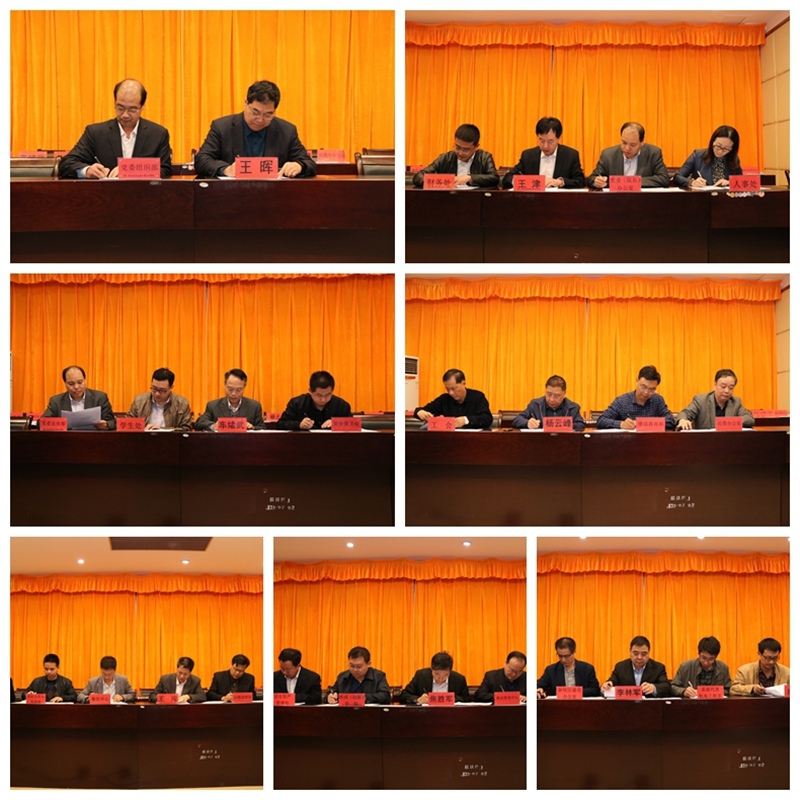 3月27日下午,学院在临渭校区学术报告厅举行2018年部门目标责任书暨全面从严治党、安全稳定责任书签字仪式。党委书记王晖,院长王津,党委副书记车绪武,党委副书记、纪委书记杨云峰,副院长王闯、焦胜军、李林军和全体处科级干部及教研室主任参加了会议。会议由王津主持。