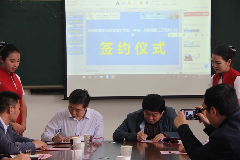 为深化产教融合,切实推进校企双主体协同育人,3月29日下午,学院与中铁一局三公司在临渭校区S206举行校企合作签订暨工程物流管理现代学徒制试点班启动仪式。学院副院长焦胜军,中铁一局三公司工会主席曹伟、人力资源部部长孙强等领导出席仪式。学院教务处处长蒋平江、管理工程系主任叶超等部门负责人及试点班29名学生参加会议。会议由校企合作处处长王庆东主持。