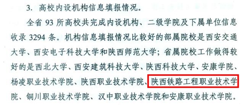 近日,陕西省教育厅办公室发文,对全省教育机构系统数据填报进展情况进行了通报,学院机构信息填报工作获得了省教育厅的肯定与好评。