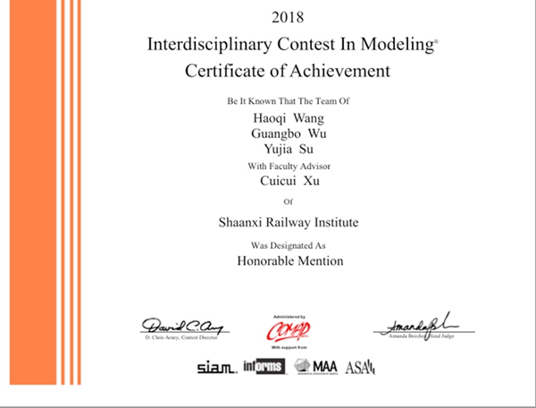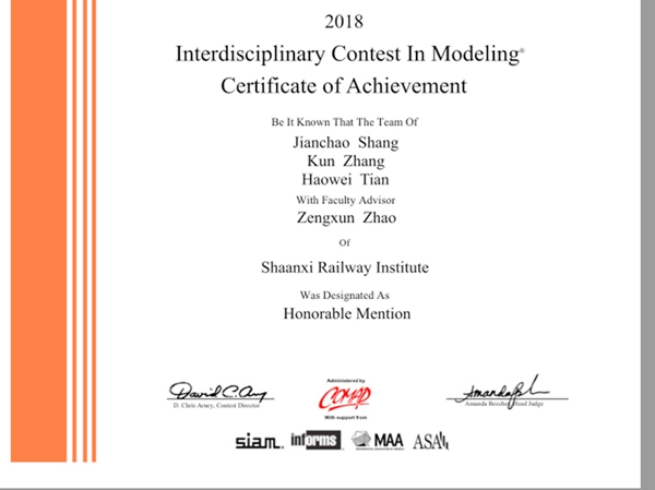 2018年美国大学生数学建模竞赛成绩于4月20日揭晓,学院学子喜获国际二等奖两项,三等奖一项。