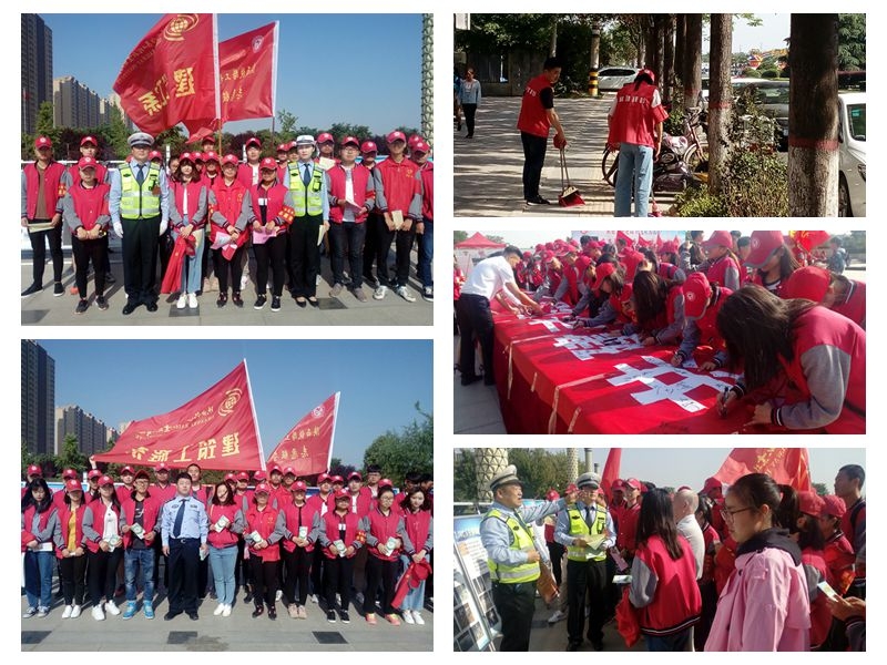 启动仪式上,人头攒动,段东旭代表学院接受了志愿服务支队队旗,带领学院广大志愿者宣誓,志愿者在“共建志愿之城 打造魅力高新”横幅上签字。启动仪式结束后,学院志愿者在幸福城附近开展了系列志愿服务活动。活动中,志愿者打扫街旁地垃圾,协助交警、民警开展交通安全、禁毒宣传活动,志愿者发放交通安全宣传资料和交通安全小礼品,向广大群众广泛宣传交通安全和禁毒相关知识。在现场,前来咨询知识的群众络绎不绝,志愿者耐心细致的为群众答疑解惑,赢得了广大群众地一致好评。