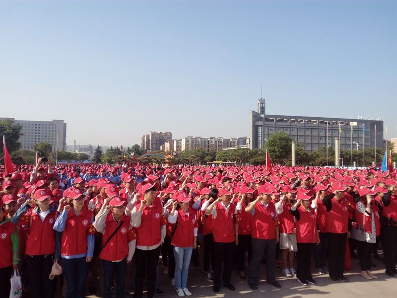 为大力弘扬“奉献、友爱、互助、进步”的志愿服务精神,不断加强和完善志愿服务体系,切实发挥志愿服务在推进校园文明建设工作中的生力军作用,5月3日上午,“共建志愿之城 打造魅力高新”万名志愿者服务活动启动仪式在高新区幸福城广场举行,学院党政办主任段东旭,高新校区各系辅导员代表及500名学生志愿者一起参加了启动仪式。