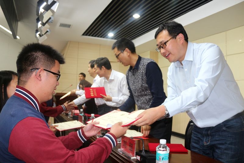 与会领导及嘉宾为获奖学生颁发获奖证书