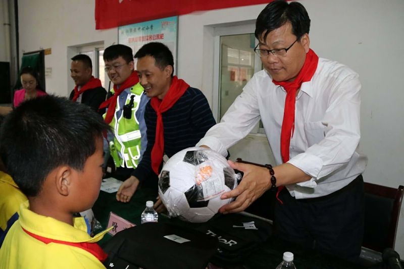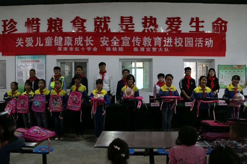为进一步凝结社会力量,本次活动中,学院还联合渭南红十字会、临渭交警大队等单位,向该校师生发放了地震发生时自救和互救的科普手册,传授了防震减灾和交通安全知识。此外,还向建档立卡的贫困学生捐赠了114个书包,并向阳郭镇中心小学捐赠了篮球,网球拍价值3800多元体育用品。(冯上朝/文 李沛华 学生记者 尤艇/图)