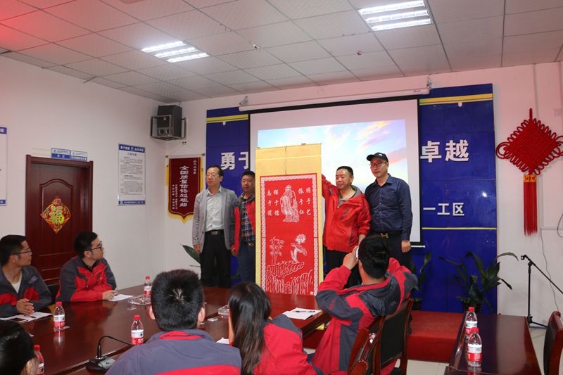 双方在项目部会议室开展了第一阶段的特色党日活动,该项目部党工委书记韩勇致欢迎辞,建筑系党总支书记郗春荣致感谢辞,并与系主任祝和意一起向项目部赠送学院学生剪纸作品。