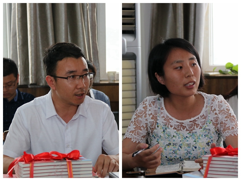 许文学与党委书记王晖分别向学院党团组织代表发放《梁家河》书籍
