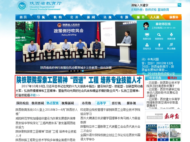 5月17日,陕西省教育厅门户网站以“陕铁职院探索工匠精神‘四进’工程培养专业技能人才”为题,对学院以工匠精神教育引导师生,培育优秀技术技能工匠人才的经验做法和取得的成效进行了专题报道。现将全文转载如下: