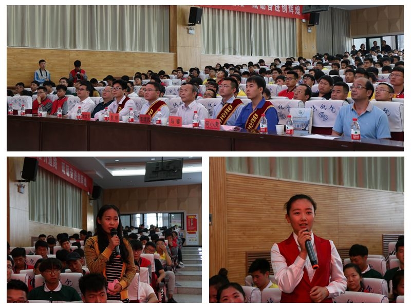 4位优秀的大学毕业生先后为陕铁院师生分享他们矢志创业、扎根基层、服务人民、为国担当的奋斗故事。西安石油大学2011届毕业生,现西安瑞特石油设备有限公司CEO,被誉为“大西安的小马云”的马睿,讲述了他经历一次次的失败后勇于拼搏砥砺奋进的创业故事。陕西师范大学旅游与环境学院2011届毕业生,湖北省麻城市担任大学生村官的徐文凭,扎根边远乡村、带领农民脱贫致富。陕西工业职业技术学院机械制造与自动化专业2010届毕业生,中国航天科技集团公司第六研究院西安航天发动机有限公司技术员国家技师,全国技术能手,何小虎,用自己的双手创造出不平凡的业绩,告诉世人工匠源自一线。陕西铁路工程职业技术学院道路与桥梁施工技术专业2006届毕业生,现任中铁一局三公司乌市地铁1号线11标段项目部经理,陕西省劳动竞赛标兵、开发建设新疆奖章和陕西省劳动模范获得者贺琪,用自己的实际行动为国家基层建设贡献力量。