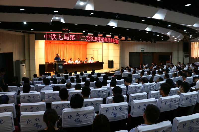 5月30日学院承办中铁七局集团有限公司BIM建模师培训班在临渭校区开班。来自集团公司各单位的190名技术人员参加了此次培训。学院副院长焦胜军、局副总工程师于小四、运维科主任齐志斌、信息中心主任丁一、铁成(创新)学院(BIM技术应用研究中心)相关负责人出席了开班仪式。