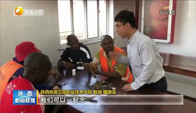 视频截图2018年6月18日,陕西电视台《陕西新闻联播》节目,以“在肯尼亚吃粽子过端午”为题,关注报道了在肯尼亚承担蒙内铁路员工培训的学院教师团队,与当地学员们一起过端午、吃粽子,共同感受中国传统文化魅力的消息。视频历时约1分钟,充分展示了学院教师团队在海外积极发挥专业特长,助力国家“一带一路”倡议的良好精神风貌。现将视频内容转载如下,欢迎大家浏览。