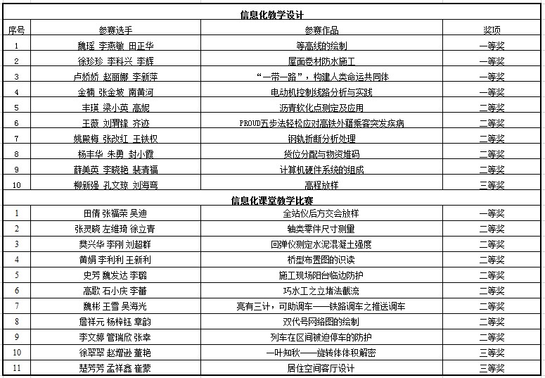 7月11日,陕西省教育厅发布《关于公布2018年高等职业院校信息化教学大赛获奖名单的通知》(陕教高办〔2018〕28号),学院推荐的24部参赛作品,21部获奖,其中,一等奖5项、二等奖13项、三等奖3项。获奖数量位居第一,一等奖数量位居第三。据悉,本次大赛共设置信息化教学设计比赛、信息化课堂教学比赛两个赛项,共有省内34所高职院校选送364件作品参赛。经专家评审,评选出一等奖38项、二等奖74项、三等奖126项。(宋德军)