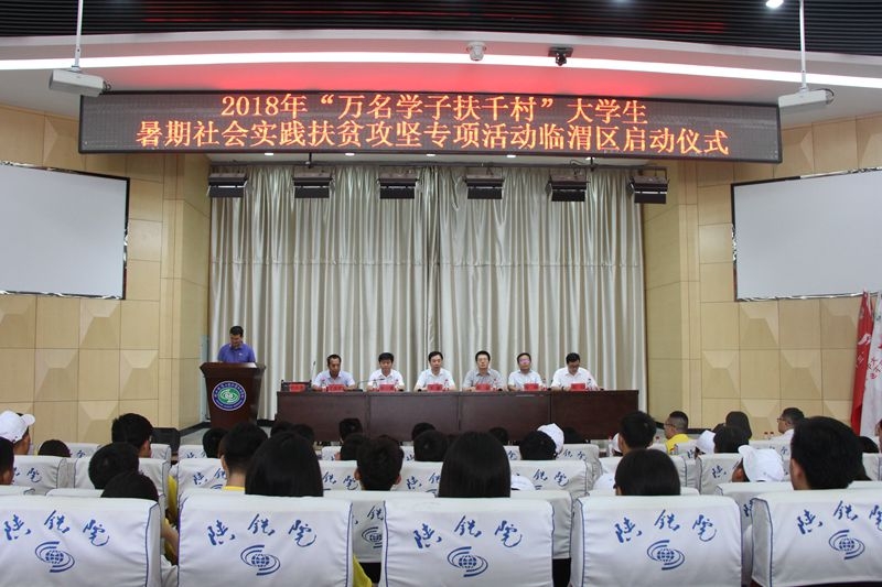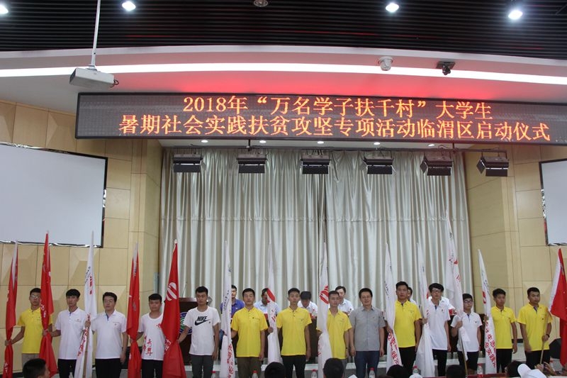 为贯彻和落实省委高教工委、团省委《关于开展陕西高校“万名学子扶千村”大学生暑期社会实践扶贫攻坚专项活动》的有关要求,临渭区2018年“万名学子扶千村”大学生暑期社会实践扶贫攻坚专项活动启动仪式在陕铁院举行。学院院长王津,共青团渭南市委书记赵超,临渭区副区长李少博,共青团临渭区委书记李林,临渭区扶贫办副主任王全武,学院学生处处长、团委书记刘喆出席了启动仪式。