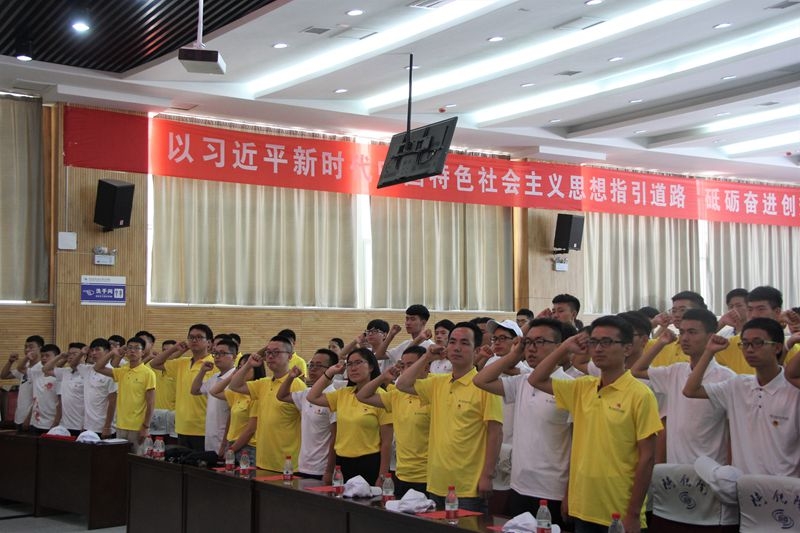 随后,刘喆宣读了活动文件;志愿者代表赵峰同学带领全体指导老师和志愿者进行了庄严的宣誓,并承诺尽己所能,帮助他人,服务社会;赵超为各志愿队授旗后,李少博讲话,他说到,社会实践是开展大学生素质教育的重要载体,是高校思想政治教育的生动课堂。大学生只有贴近基层,贴近群众,贴近实际,深入了解我国社会、政治、经济发展的现状,才能不断加强责任感和使命感,提高学习和工作上不断前进的动力,真正做到坚持学习书本知识与投身社会实践的统一,他希望大家把社会当作大课堂,虚心向人民群众学习,在社会实践中提高自身素质,促进全面发展,希望每一个团队都相互关心、互相帮助,依靠集体的力量,每位志愿者可以学有所得,学以致用,在暑期社会实践的大舞台上,展现大学生的青春风采。