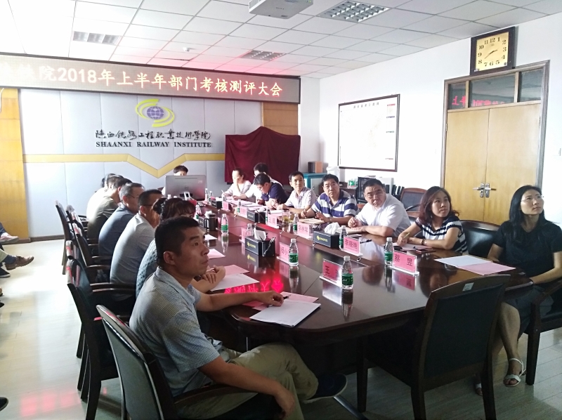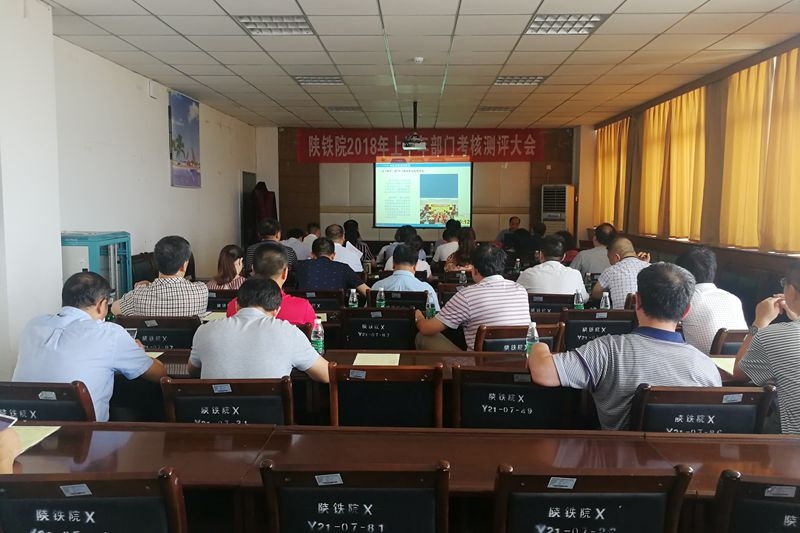 为全面回顾总结2018年上半年学院的整体工作,更好推动2018年下半年各项工作,加快建立学院内部质量保证体系,推动创建中国特色高水平高职院校,2018年7月19日,学院组织召开2018年上半年部门工作考核测评大会,党委书记王晖,院长王津,党委副书记车绪武,党委副书记、纪委书记杨云峰,副院长王闯、李林军等院领导出席测评大会并担任评委。考核测评评委还有学院党委委员、纪委委员、学术委员会委员、工会委员代表及各部门负责人等共计61人。本次考核测评分成两组分别在临渭校区A楼11楼、12楼会议室进行,第一组为8个专业教学系部和基础课部、体育教学部、思政部;第二组为22个院属职能部门。