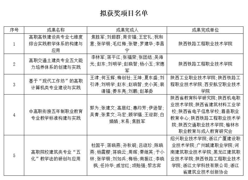 据悉,国家级教学成果奖是按照《教学成果奖励条例》设立,由国务院批准的教育教学研究和实践领域最高奖,每四年评审一次。2018年国家级教学成果奖包括基础教育、职业教育、高等教育3个大类,其中,职业教育教学成果奖拟获奖项目共452项,分设特等奖2项、一等奖50项、二等奖400项。(宋德军)
