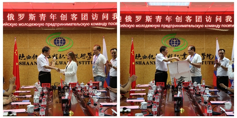 座谈会结束后,双方互赠礼物,代表着彼此间真挚的情谊,饱含着中俄友谊万古长青、源远流长的美好祝愿。随后,代表团一行还参观了学院教师发展中心、学生素质教育基地、高铁实训工区等地。