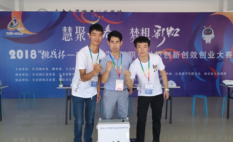 8月14日至16日,由共青团中央、教育部、人力资源和社会保障部、中国科协、全国学联、江苏省人民政府共同主办的2018年“挑战杯——彩虹人生”全国职业学校创新创效创业大赛决赛在南京举行,学院贾永博老师指导,盛万萌等同学的作品《隧道空气质量智能检测控制系统》荣获二等奖,郭军老师指导、王刚院等同学的作品《旭日朝阳》荣获三等奖,优异的成绩展现了学院学生的创新能力与专业技能水平,凸显了学院不断推进大学生创新创业教育的成效。