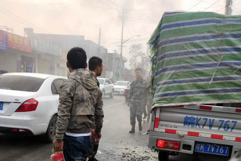 危难之际,关键时刻,仵倩妮、雷佳敏、黄轩、王雄、张航、冯浩等六名队干部急人所急,挺身而出,借用过往车辆上的灭火器,在短短两分钟内将大火成功扑灭,防止了火势进一步的扩大蔓延,将货车司机的损失降低到了最小程度。