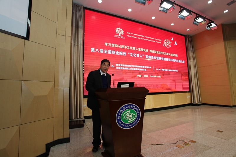 11月6日,第八届全国职业院校“文化育人”高端论坛暨陕铁院建校45周年庆典大会在学院高新校区博爱厅举行,工业和信息化部工业文化发展中心副主任孙星,陕西省教育厅总会计师刘宝平,教育部职业院校文化素质教育指导委员会副主任委员、浙江经济职业技术学院党委书记俞步松,教育部职业院校文化素质教育指导委员会副主任委员、重庆工业职业技术学院党委书记王官成,教育部职业院校文化素质教育指导委员会副主任委员、北京市商业学校党委书记史晓鹤,陕西省职业技术教育学会常务副会长王晓江,天津大学大学文化与校史研究所所长王杰教授,马来西亚吉隆坡建设大学亚洲铁路中心首席专家尤玆里查姆.尤萨,中铁一局集团有限公司副总经理、陕铁院优秀校友罗田郎等领导、专家出席了开幕式。来自全国107所职业院校(单位)的250余名领导与代表参加了会议。教育部职业院校文化素质教育指导委员会委员、学院党委书记王晖主持了开幕式。