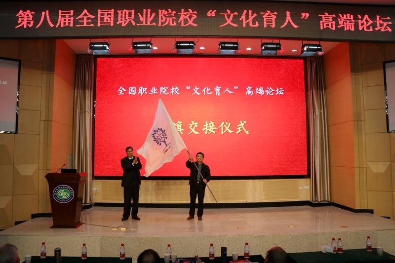 会议最后,俞步松作会议总结。会议宣布第九届“文化育人”高端论坛由武汉职业技术学院承办,并举行了会旗交接仪式。