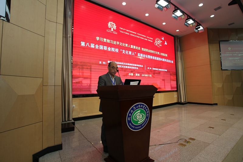 他结合习近平总书记对文化建设和文化育人的系列讲话精神对培育职业教育特色文化提出了要求:要树立高度的文化自觉与文化自信,扎根中国大地将中华优秀的传统文化,结合学校实际进行院校文化建设,形成中国特色、职教特色,地方特色,和学校特色都十分鲜明的职业教育文化;要深刻理解马克思劳动创造人的重要论断,努力挖掘践行社会主义核心价值观要求的劳动精神,劳模精神,工匠精神,引导学生成为推动社会主义文化大发展、大繁荣的重要依靠力量;建设好校园文化,讲好职业教育故事、传播职业教育正能量,注重以文化人、以文育人,营造良好的校园文化;发挥好企业作用,充分挖掘产业文化、工业文化和地域文化特点,从企业的先进文化理念中吸收有价值的元素,使文化建设更好的体现职业教育紧密联系产业的特色。
